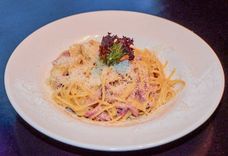 330/2 г • Спагетти, грудинка к/в, сливки, яйцо куриное, сыр грана падано