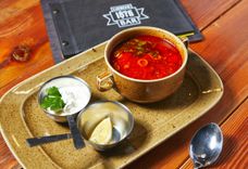 200/90/50/20 г • Колбаса с/к. говядина, ветчина с/к, огурцы соленые, каперсы, маслины, лимон, лук, сметана, зелень