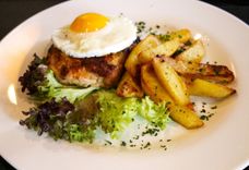 270/5 г • Куриная грудка, помидор, сыр, яйцо перепелиное, листья салата, гренки, соус цезарь